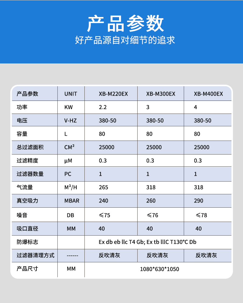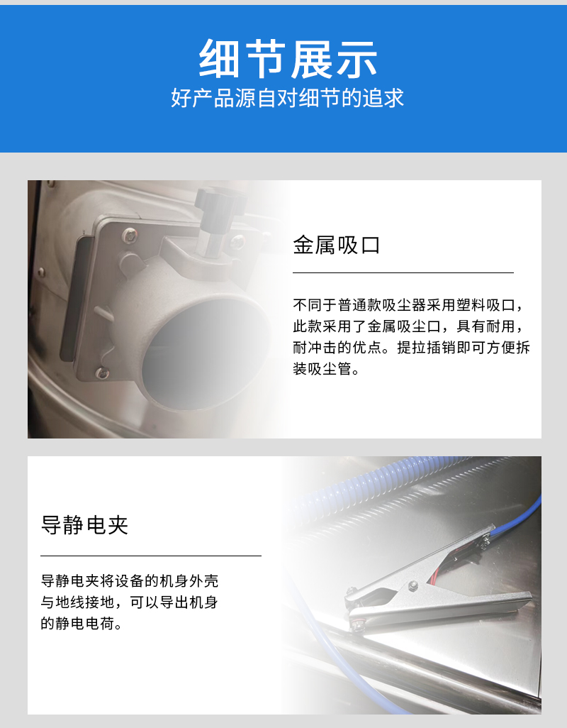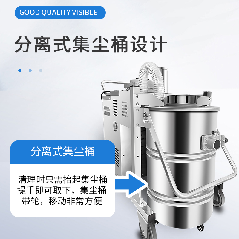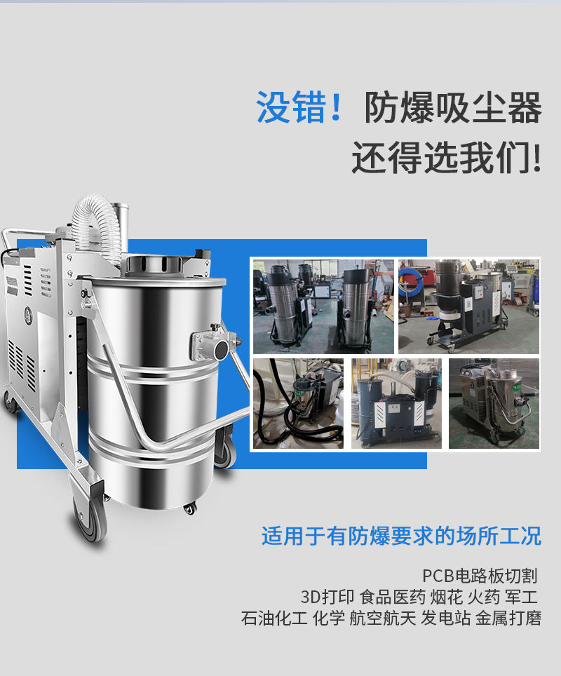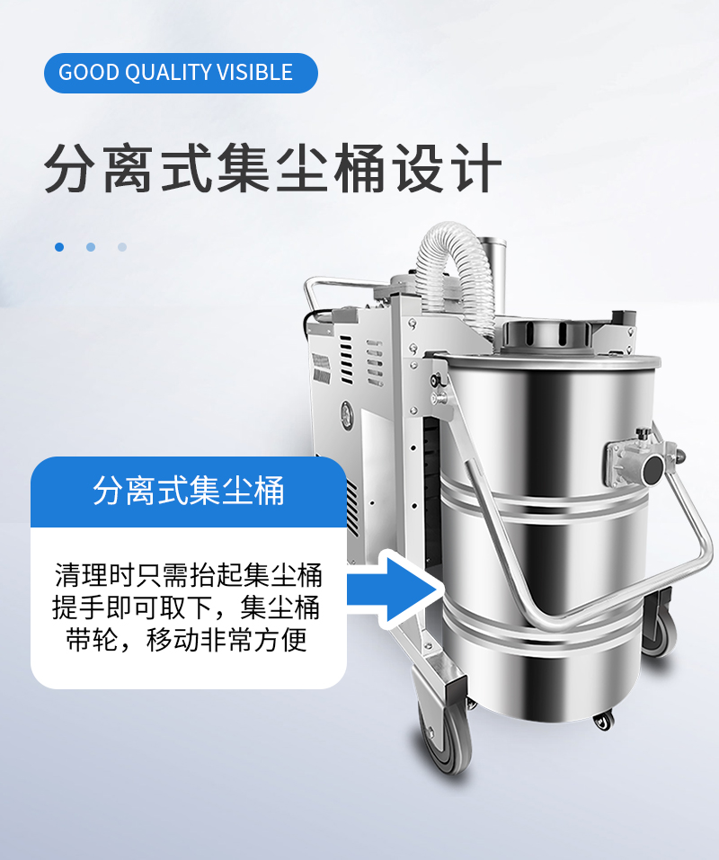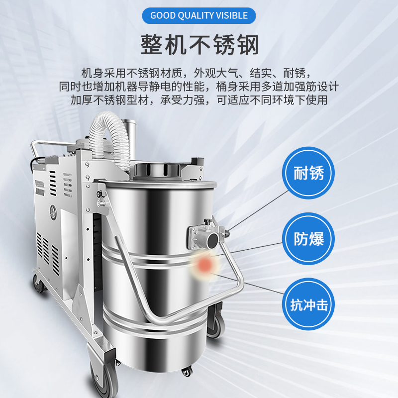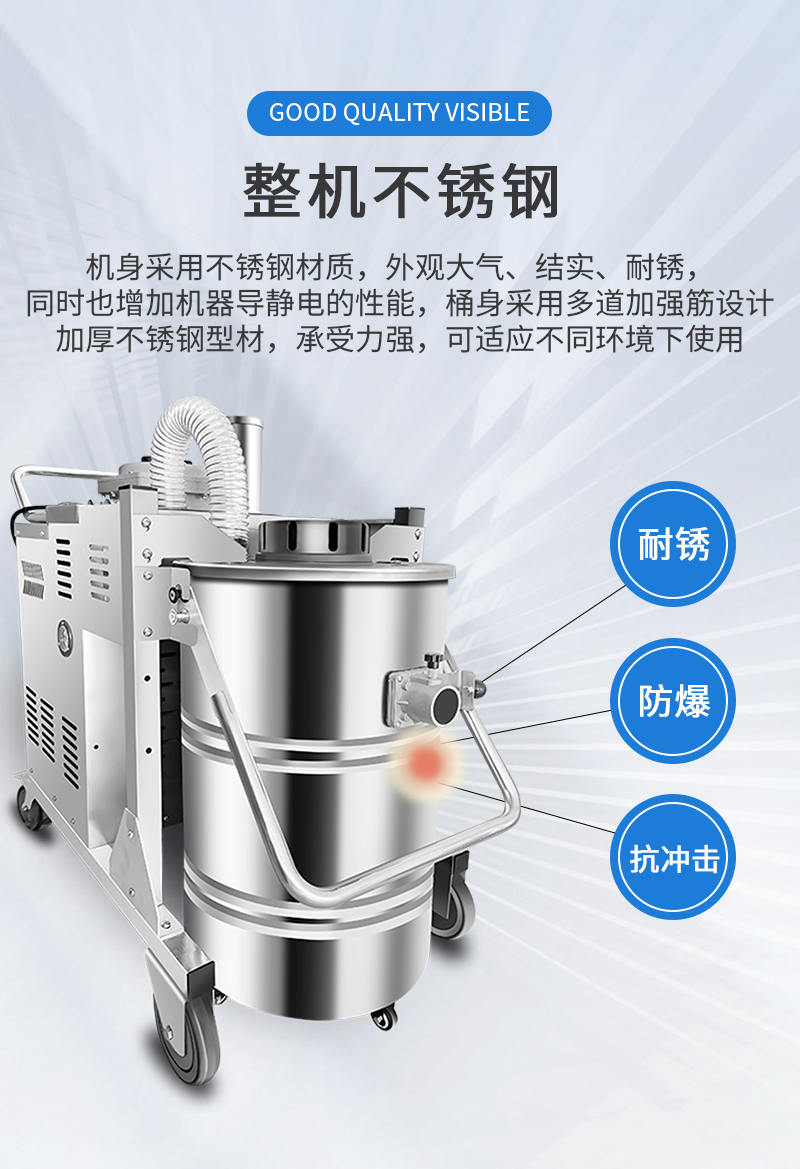 整機防爆工業吸塵器,整機不銹鋼,粉塵防爆,氣體防爆,80L容量,桶身分離方便傾倒垃圾,可24小時不停機工作